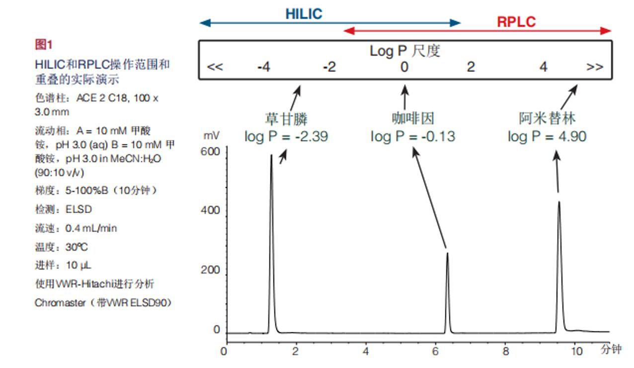 HILIC為親水大極性分析(LogP為負值)物提供了 RPLC的替代選擇,無需使用離子對試劑即可實現保留分離。