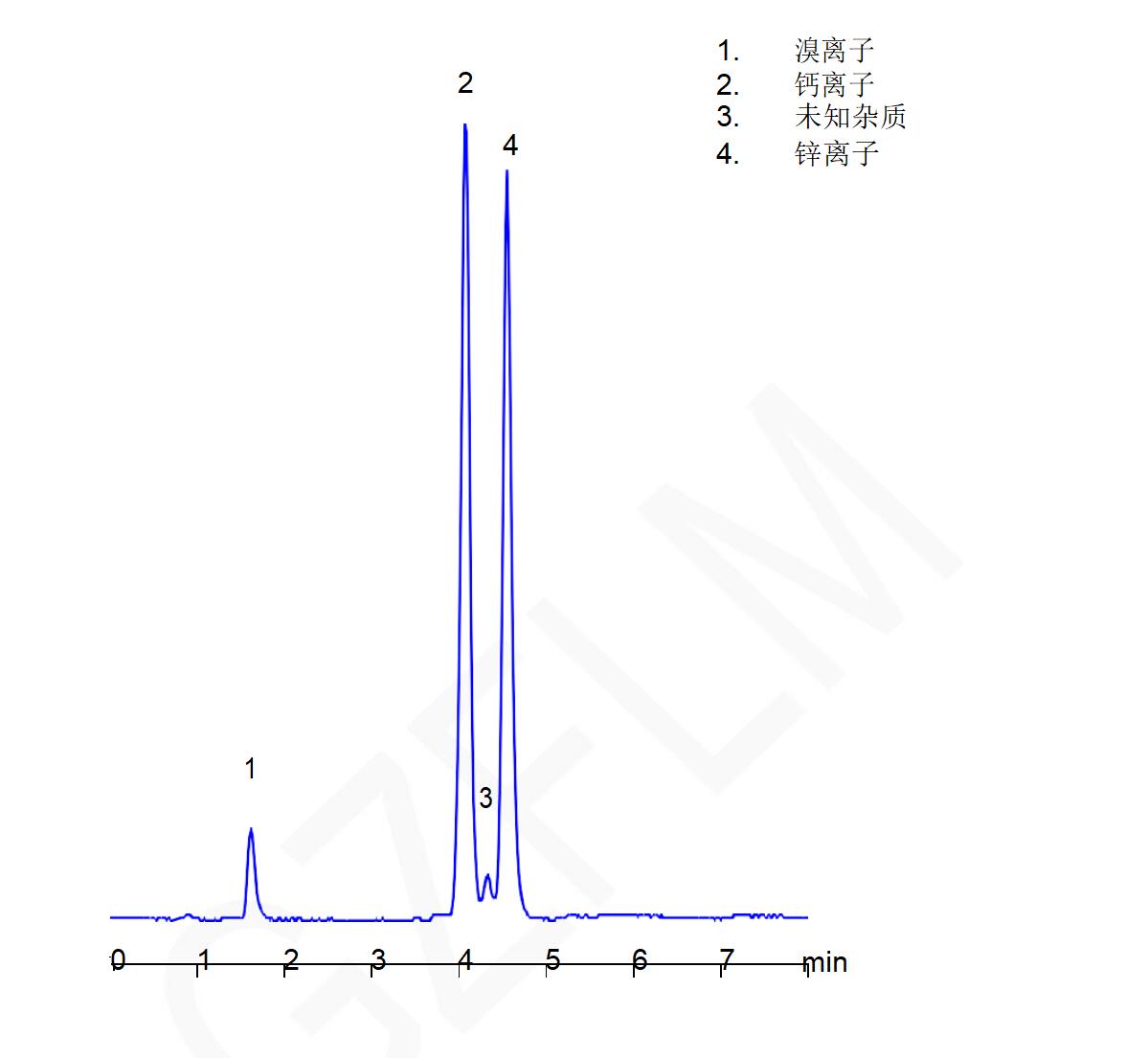 說(shuō)明:若用此法測(cè)定鈣離子時(shí),樣品中需避免存在氯離子,在Comixsil HAC固定相色譜柱中,鈣離子與氯離子將共洗脫。 如果是氯離子存在時(shí)的鈣離子的分析,可以采用Comixsil ACRP或Comixsil RP-100等其它固定相色譜柱進(jìn)行分析。