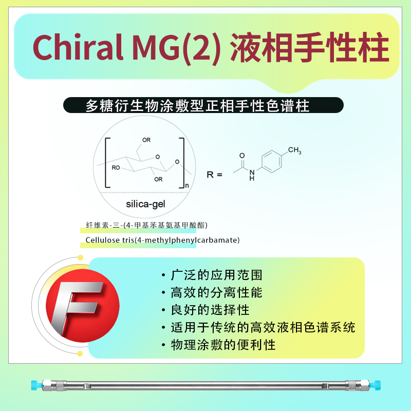 • Chiral MG(2) 液相手性色譜柱 菲羅門Chiral MG(2)液相手性色譜柱是菲羅門公司FLM? Chiral系列中的一種涂敷型多糖衍生物手性柱。